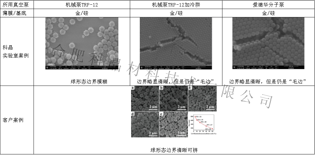 案例②總結(jié):從三組6個樣品中看出,干泵(第3組)效果>油泵+冷阱(第2組)>油泵(第1組),其中第三組單位面積污點數(shù)量最少,由此看出冷阱對鍍膜的效果改善比較的明顯,干泵鍍膜質(zhì)量最好。