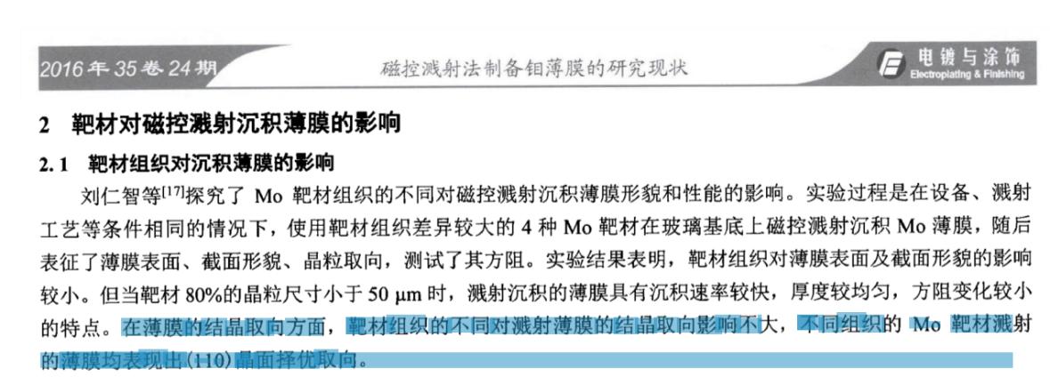 [1] https://www.doc88.com/p-7843590246566.html《磁控濺射法制備鉬薄膜的研究現(xiàn)狀》