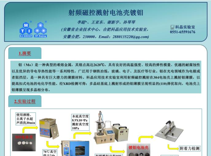 射頻磁控濺射電池殼鍍鉬