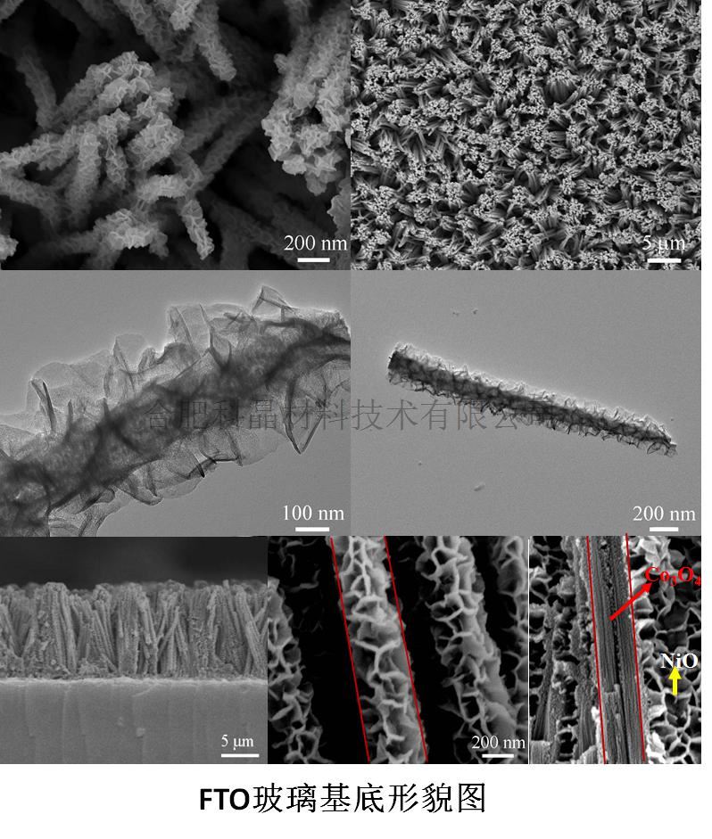 | 產(chǎn)品信息(Co3O4/NiO核殼納米線陣列) | 四氧化三鈷/氧化鎳(Co3O4/NiO)核殼納米線陣列其支撐核為介孔四氧化三鈷納米線,外殼為氧化鎳納米片。 該核殼納米陣列經(jīng)水熱法和化學(xué)浴法結(jié)合制備而成,可以在多種導(dǎo)電和非導(dǎo)電基地(如碳布、泡沫鎳、鈦片、鎳片、不銹鋼片、泡沫石墨烯、玻璃等)上生長。 內(nèi)核的四氧化三鈷納米線平均直徑80-100nm,納米線由相互交聯(lián)的粒徑為4-5nm的納米顆粒構(gòu)成,且納米顆粒間的空隙約為3-5nm。 外殼氧化鎳納米片(直徑約10-20納米)交互纏繞生長在四氧化三鈷納米線核上構(gòu)成多孔異質(zhì)結(jié)構(gòu)的核殼納米陣列。 核殼納米線的直徑300-400nm, 陣列整體長度約為5微米。 樣品宏觀尺寸不超過寬度3.5厘米´長度4.5厘米。 該樣品的宏觀色澤呈黑色。 產(chǎn)品信息(CoO/NiO核殼納米線陣列): 氧化亞鈷/氧化鎳(CoO/NiO)核殼納米線陣列和上述四氧化三鈷/氧化鎳核殼納米線陣列的制備方法和形貌尺寸均類似,唯一不用在于前期通過不同熱處理工藝生成氧化亞鈷納米線核心,然后再以此為基礎(chǔ)生長氧化鎳納米片交聯(lián)外殼。 代表性樣品的掃描電鏡和透射電鏡照片如下: FTO玻璃和泡沫鎳基底上: |