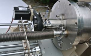 一根鎧裝熱電偶通過左端法蘭通入到爐管內(nèi)部,并與坩堝相連接(圖1) 通過步進(jìn)電機(jī)驅(qū)動使坩堝移動,并和熱電偶和坩堝一起移動,實(shí)時監(jiān)測樣品的溫度 進(jìn)氣端法蘭轉(zhuǎn)輪式法蘭(圖2) 可同時在轉(zhuǎn)輪系統(tǒng)中放入4個坩堝,可交替將放入4種材料的石英坩堝自動送入到石英管中(可在真空狀態(tài)或氣氛保護(hù)狀態(tài)進(jìn)行運(yùn)作)