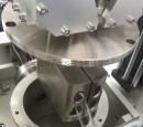 一根鎧裝熱電偶通過左端法蘭通入爐管內(nèi)部,并與坩堝相連接,實(shí)現(xiàn)溫度的實(shí)時(shí)監(jiān)測(cè)(如圖1) 升降雙通道進(jìn)料系統(tǒng)放置在一中空的真空腔體中,上方采用不銹鋼真空法蘭進(jìn)行密封,兩端同樣采用不銹鋼真空法蘭與坩堝推進(jìn)裝置及管式爐進(jìn)行連接,保證進(jìn)料在真空狀態(tài)或者氣氛保護(hù)狀態(tài)下進(jìn)行運(yùn)作(圖2) 進(jìn)料系統(tǒng)真空腔體右端與管式爐連接法蘭處安裝有2個(gè)獨(dú)立小石英管(圖3) 在升降雙通道進(jìn)料系統(tǒng)中最多可放入4個(gè)坩堝(圖4),利用推送系統(tǒng)可交替將4個(gè)不同蒸發(fā)源單個(gè)依次送入石英管中,也可將放入不同材料的2個(gè)坩堝蒸發(fā)源一同送入,分別精確的推入兩個(gè)獨(dú)立的小石英管中(圖5),找到所需的蒸發(fā)溫度處進(jìn)行共蒸發(fā)或者反應(yīng)蒸發(fā),保證實(shí)驗(yàn)的重復(fù)性以及穩(wěn)定性(圖6)