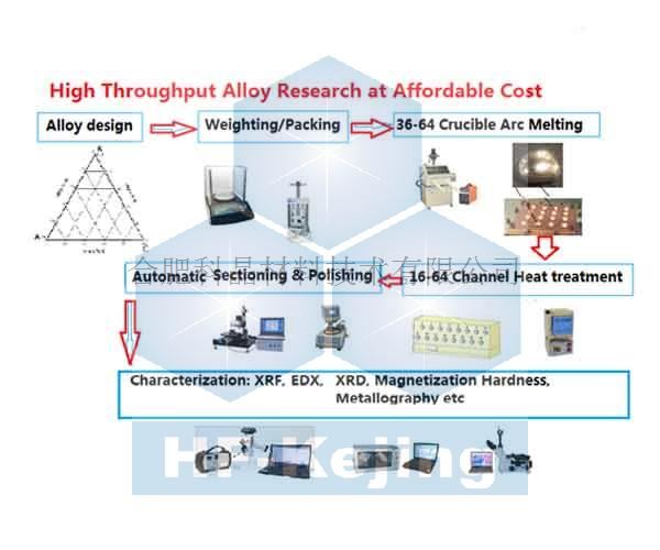 | 結(jié)構(gòu) | 32工位高通量電弧熔煉系統(tǒng)包含: l 循環(huán)手套箱,保證水氧含量小于1ppm l 2個16工位的水冷銅坩堝 l 水冷鎢電極固定在X-Y-Z運動機(jī)構(gòu)上 l 手動的電弧熔煉槍,帶有KF40饋通,可與手套箱連接 l 16 L / min循環(huán)水冷機(jī) |
