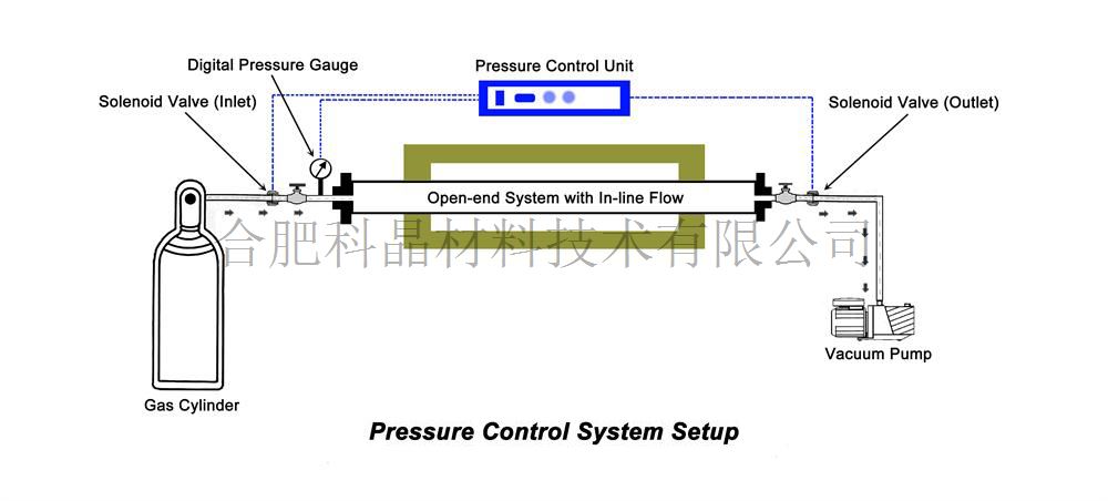 將一個(gè)電磁閥安裝在管式爐一端法蘭上,然后通過(guò)氣管將電磁閥與氣瓶相連接(需要1/4" I.D的聚四氟乙烯管,可在本公司購(gòu)買) 一個(gè)電磁閥安裝在另一法蘭上,然后通過(guò)軟管將電磁閥與真空泵相連接 壓力傳感器安裝在法蘭上 將電磁閥和壓力傳感器與控制盒連接 在控制盒上設(shè)置所需的爐管內(nèi)最高氣壓和最低氣壓。 (若客戶已購(gòu)買了管式爐,可將法蘭寄回本公司,本公司可負(fù)責(zé)安裝)