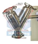 | 尺寸和容量 | ? 容量:2.5 L (通??煞胖?000g粉末顆粒) ? 可點擊圖片查看相關尺寸 ? 進料口采用2.5’’卡箍式接口,進出料方便快捷 ? 可選購50mL(20g)和250mL(100g)的V型筒(點擊右圖查看詳細信息) |