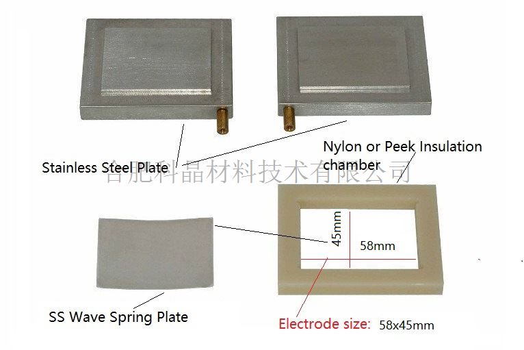 底板和頂板采用不銹鋼制作(可選購表面鍍金和鍍鋁的底板和頂板) 軟包電池腔采用尼龍或PEEK制作 聚醚醚酮 (PEEK) 被稱為塑料之王,具有極強(qiáng)的抗腐蝕性和極高的機(jī)械強(qiáng)度 配有一不銹鋼彈片可用于組裝單層的軟包電池(點(diǎn)擊圖片查看詳細(xì)資料)