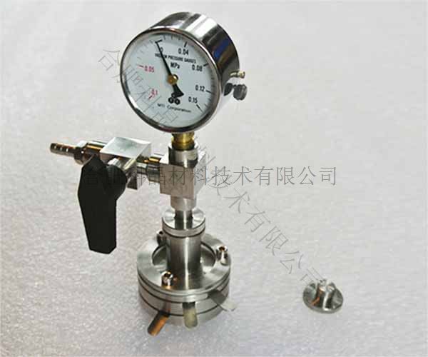 全不銹鋼制作 ( SS304) 直徑:24 mm 三個電極之間采用O型密封圈進(jìn)行密封,工作溫度可以達(dá)到250 °C 上面附有彈簧,可適用于不同厚度的電極 電池很容易單獨的放進(jìn)去,然后進(jìn)行測試 體積很小,很容易在手套箱中自由穿過 機(jī)械壓力表: 1/4NPS (也可選數(shù)字式壓力表) 壓力范圍: -0.1Mpa-0.5Mpa (0 Mpa as atmosphere) 1/4" 不銹鋼針閥和管接頭