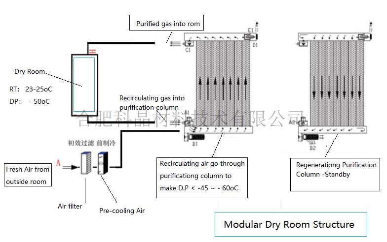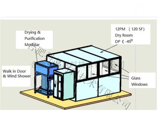 - 12m2,露點<-45℃,帶有風(fēng)淋室和自清洗通道