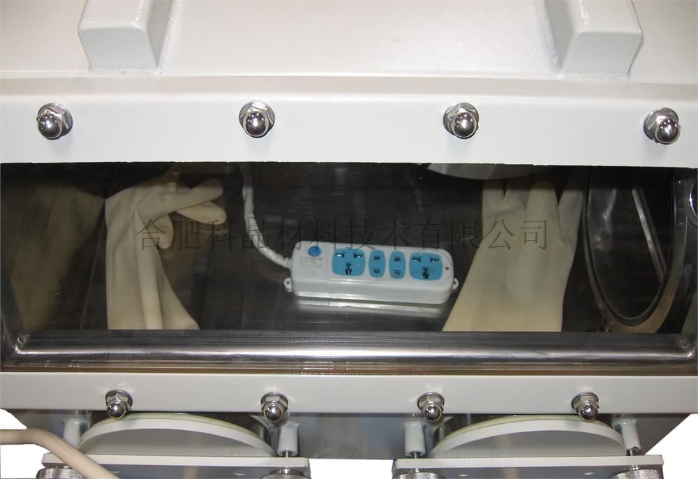 手套箱內(nèi)部有一1500W的插線板,手套箱外壁上有一三芯插頭于內(nèi)部插線板相連接,儀器配有一根三芯電源線,只要接上手套箱,通上外部電源,便可為手套箱內(nèi)部?jī)x器供電