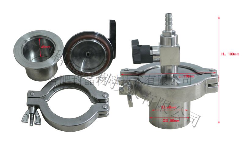 KF50標(biāo)準(zhǔn)卡箍 1/8’’不銹鋼真空球閥 1/8’’寶塔嘴轉(zhuǎn)接口 可對(duì)罐體抽真空通氣氛