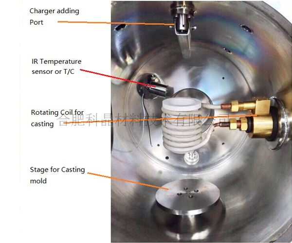 | 真空腔體 | ? 真空腔體采用304不銹鋼制作,帶有水冷夾層 ? 真空度 10-4pa ( 冷態(tài)) ? 配有分子泵系統(tǒng),真空度可到6x10-4 pa ? 帶有二次加料裝置,可在熔煉過程中加料(在真空或惰性氣體保護狀態(tài)下) ? 帶有坩堝傾倒功能,可實現(xiàn)金屬樣品澆注(可選購定制水冷銅模) |
