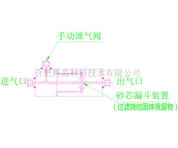 | 氣體過(guò)濾和冷阱裝置 | ? 氣體從爐管流出后,在出氣口調(diào)壓閥后端處安裝一個(gè)漏斗砂芯過(guò)濾裝置(如圖片所示) ? 在漏斗砂芯裝置后端再裝配一個(gè)冷阱裝置(如圖片所示),用于冷凝收集固態(tài)沉積物,以保護(hù)后端的出氣質(zhì)量流量控制系統(tǒng)。 |