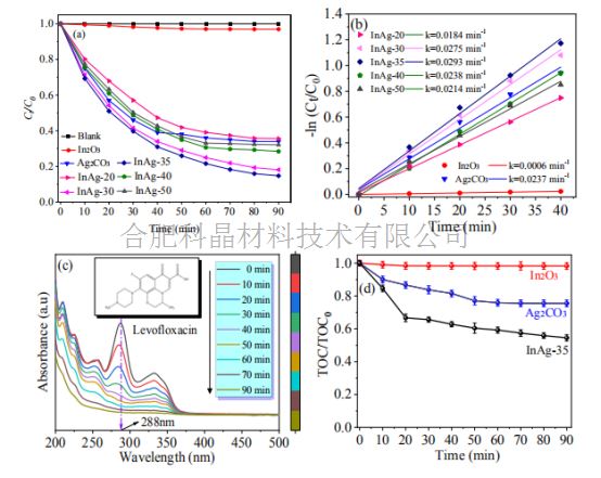 通過匹配能帶與兩個(gè)半導(dǎo)體建立異質(zhì)結(jié)可以極大地提高光催化性能。因此,一種新的利用原位熱液沉淀法合成了In2O3/Ag2CO3s方案異質(zhì)結(jié)。通過DFT計(jì)算證明,s型異質(zhì)結(jié)In2O3/Ag2CO3系統(tǒng)中光致電子的傳輸機(jī)制如下,內(nèi)部電場(chǎng)(IEF)由In2O3/Ag2CO3的s型異質(zhì)結(jié)驅(qū)動(dòng)了光源電子fr由碳酸銀導(dǎo)帶直接轉(zhuǎn)移到In2O3價(jià)帶,可使光致電子空穴對(duì)的有效分離。In2O3/Ag2CO3的光致發(fā)光壽命大大延長(zhǎng)到8.42ns,而空穴和羥基自由基是最重要的活性自由基。在可見光下,Ag2CO3的氣色結(jié)對(duì)左氧氟沙星的光降解率(86.1%)和礦化能力(46.2%)最高。