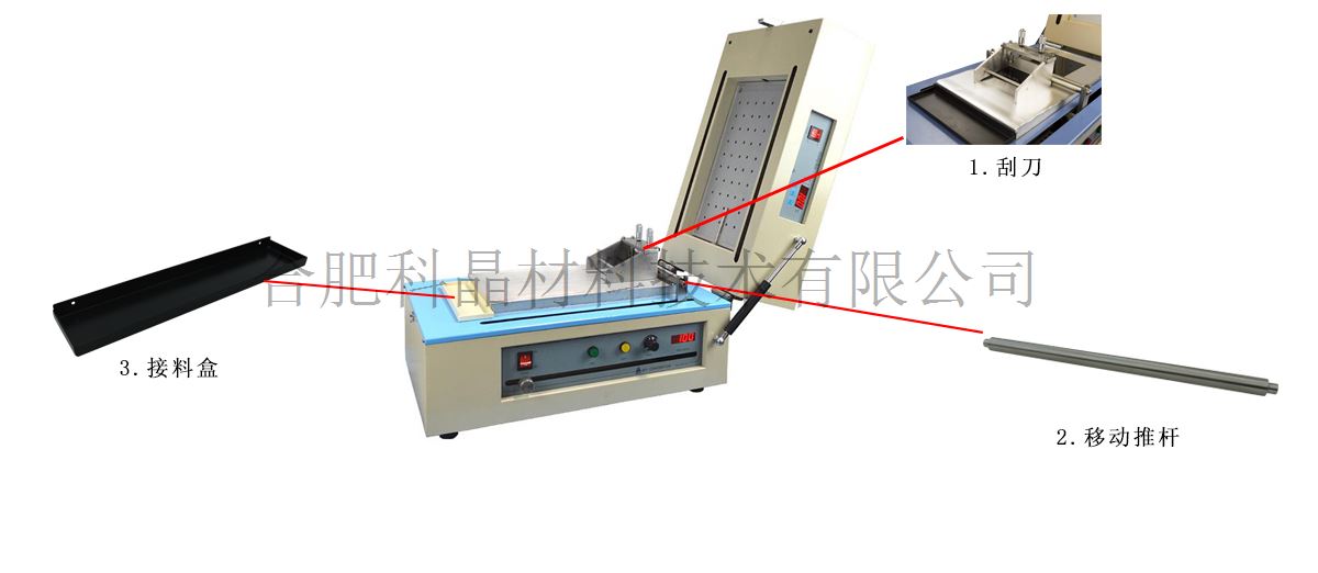 | 刮刀 | 1. 標(biāo)配 ·設(shè)備標(biāo)配有250mm寬厚度可調(diào)刮刀 2. 選配 ·合肥科晶現(xiàn)有刮刀的寬度尺寸分別有:50mm、100mm、150mm、180、250mm。 ·涂覆面寬度為 200 mm,選配的刮刀的寬度不可超過此值。 ·如果涂覆量比較少,且符合以下四個固定厚度時,可以選用合肥科晶的四面制膜器,有效涂覆寬度為80mm,四個面的固定厚度尺寸分別是:5μm、10μm、15μm、20μm。 四面制模器部分 刮刀展示 |