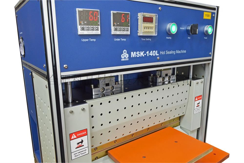 - MSK-140系列兩款單工位熱封機是科晶公司開發(fā)的用于軟包鋰電池頂邊、側(cè)邊的封裝。通過電阻發(fā)熱管傳遞給封頭(銅質(zhì)) ,利用熱傳導效應作用于鋰電池的包裝材料(鋁塑膜)上,在一定壓力作用下,使其加熱變軟接近熔融狀態(tài)而完成壓合融接。并且不更換模具實現(xiàn)頂封和側(cè)封。