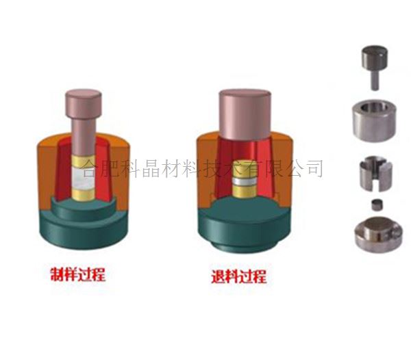 | 警示 | ·在操作過程中,請務必戴好護目鏡?。?! ·壓模不能用于壓制粒度小于30微米的粉末。小顆??赡軙胪茥U和鋼套筒之間的間隙,并在壓縮過程中損壞套筒。 ·進行球磨和篩分粉末,僅將32?75微米的粉末施加到壓模上,以免造成損壞。 |
