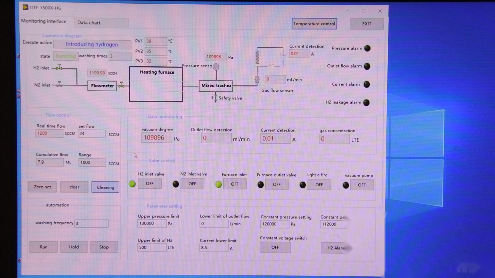 | 控制及采集 | ·控制集成包括:1.真空清洗爐管設(shè)定;2.壓力恒壓設(shè)定;3.進(jìn)氣模式設(shè)定 ·設(shè)備標(biāo)配以太網(wǎng)口,設(shè)備可接入局域網(wǎng),互聯(lián)網(wǎng),遠(yuǎn)程操作 |
