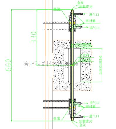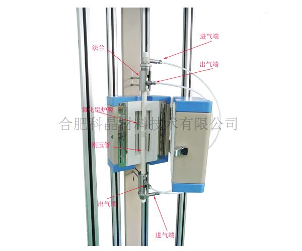 | 法蘭和接口 | · 上下法蘭各包含一個(gè)進(jìn)氣通道和一個(gè)排氣通道以及固定組件,兩個(gè)通道用密封圈隔開; · 爐管端口各加一個(gè)密封圈用于保護(hù)爐管; · 最上端是一個(gè)聚四氟絕緣蓋,用油脂密封(客戶自備),防止帶電金絲(客戶自備)和不銹鋼件接觸;固定件用螺母固定在殼體上。 另一端為相同結(jié)構(gòu) 系統(tǒng)組裝示意圖如下: |