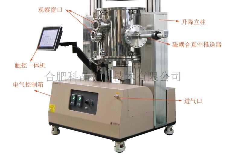 | 加熱爐腔體 | ·爐腔體尺寸:內(nèi)徑500mm*高460mm ·爐腔體密封:密封采用O型圈+法蘭壓緊密封 ·觀察窗口:爐腔體上留有直徑60mm石英觀察窗口 ·爐腔體連接有磁耦合真空推送器,推送器前端連接有氮化鋁擋板,在高真空狀態(tài)下或氣氛下可以對(duì)蒸鍍?cè)催M(jìn)行遮擋。 ·爐腔體另一側(cè)連接有高真空電動(dòng)插板閥+機(jī)械泵+分子泵 ·爐腔體真空度:最高可達(dá)10-3Pa |