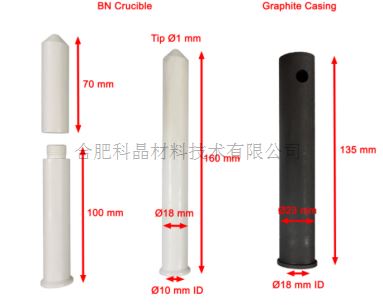 | 坩堝 | · 設(shè)備中包含2個(gè)石英坩堝,噴嘴孔徑為Φ1mm,可熔化熔點(diǎn)≤1500℃的金屬材料(因樣品量少,熔化速度較快,可熔化熔點(diǎn)高于石英軟化溫度的金屬) · 可選購BN材質(zhì)的坩堝,用于熔化熔點(diǎn)更高的金屬樣品 · 可選購石墨護(hù)套(石墨護(hù)套+石英坩堝+較大的感應(yīng)線圈)用于熔煉熔點(diǎn)較高或感應(yīng)發(fā)熱量較小的材料 |
