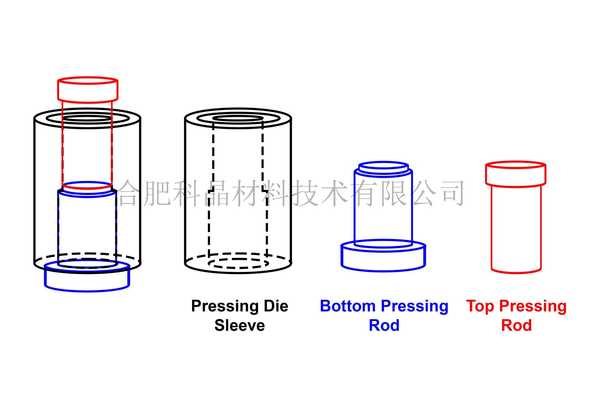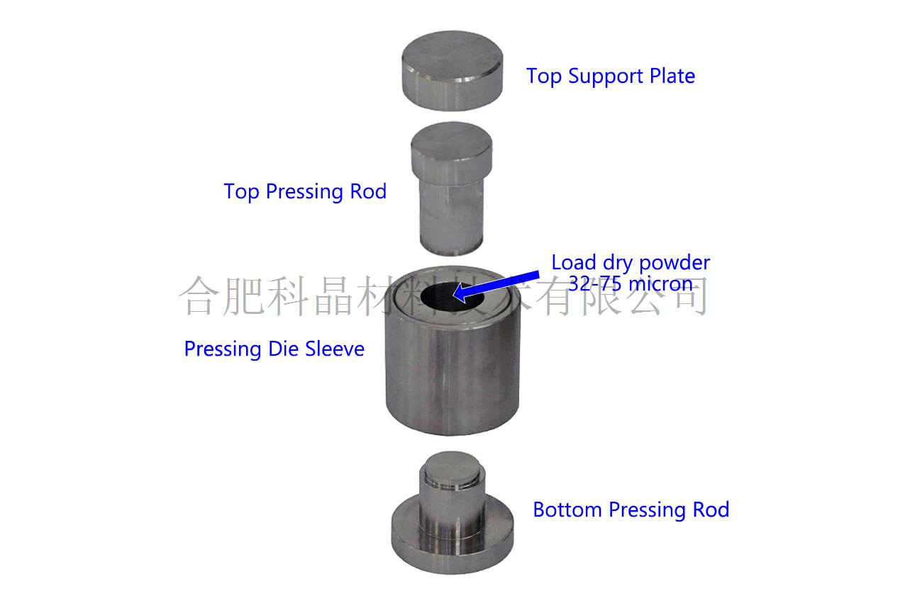 | 模具安裝示意圖/說(shuō)明 | ·用瑪瑙研磨缽混合研磨粉末; ·將粉末在高溫爐中用適當(dāng)?shù)臏囟冗M(jìn)行煅燒混合; ·將煅燒后的粉末再次用研缽研磨; ·再將粉末倒入模具中; ·將樣品在壓力機(jī)中用適當(dāng)?shù)膲毫M(jìn)行壓制 (您可以使用CIP再次按壓,使密度增加約5-10%。) ·從模具中取出樣品 ·再用合適的溫度進(jìn)行燒結(jié) |