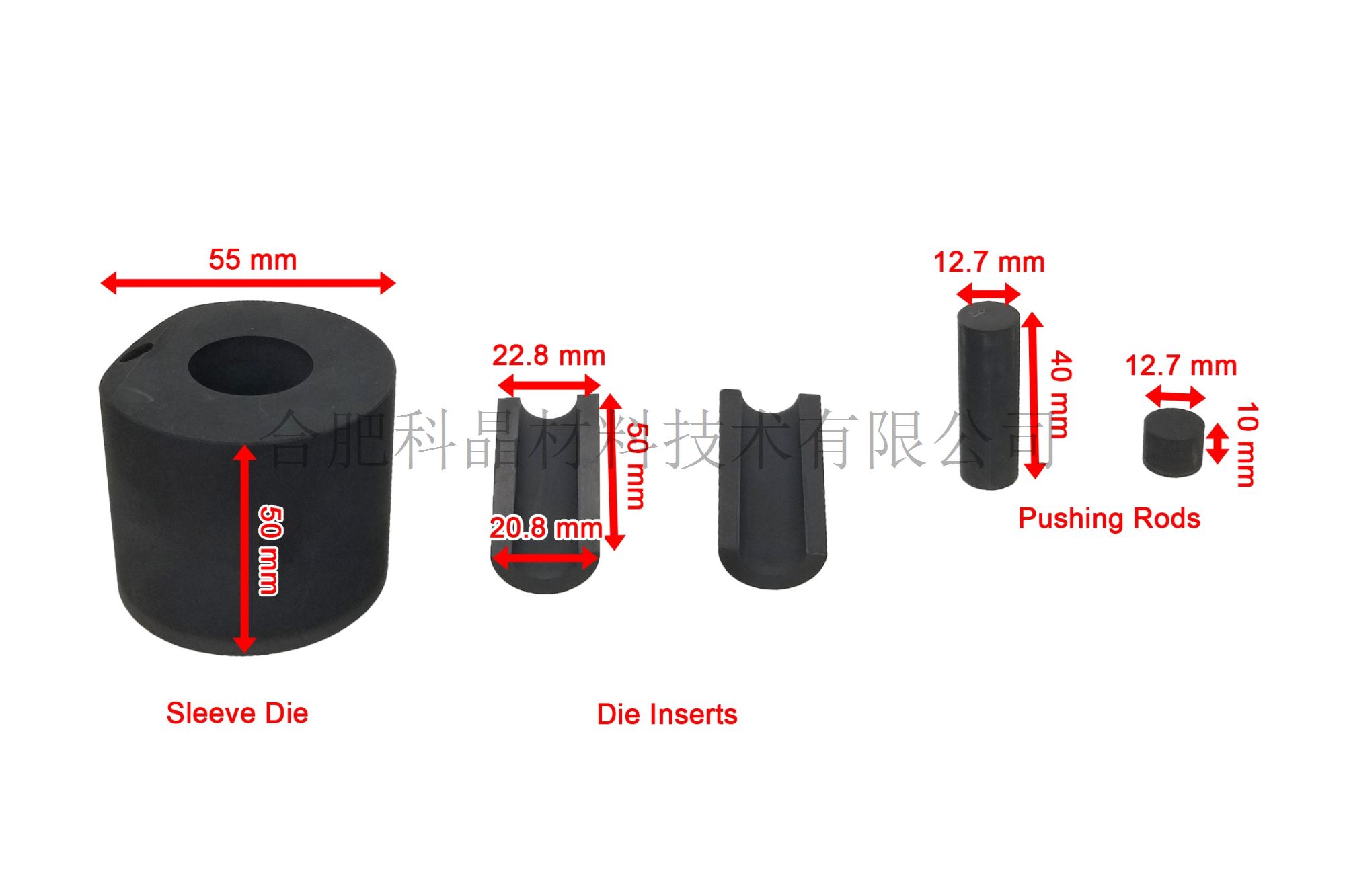 - DIE05DGP4S石墨開瓣干壓模具適用于合肥科晶1000℃真空熱壓爐OTF-1200X-VHP4和1600℃真空快速熱壓爐OTF-1700X-RHP4??梢栽诟哌_ 1700 ℃的高溫下 和100 MPa 的壓力下對陶瓷材料進行壓制。它具有兩個分體式模具插件,可輕松釋放樣品。