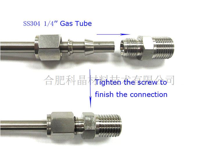 ·一端連接1/4〞(外徑:6.35mm)石英管(包括一個(gè)硅膠密封圈EQ-SOR-TCring)·一端連接1/4〞(6.35mm)的氣管(包括一對316不銹鋼卡套 MTI-316SS-SET)