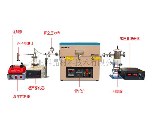 ·前驅(qū)體霧化:1.7MHz超聲霧化罐,可以把液體前軀體霧化,幾乎不產(chǎn)生任何熱量。霧氣隨著導管進入到加熱爐內(nèi),導管上纏繞有加熱帶防止霧氣冷凝。 ·加熱分解:管式爐最高溫度可達1200℃。通過載流氣體將霧氣帶入到爐管內(nèi),通過高溫將霧化的前驅(qū)體分解. ·納米粉收集:一個靜電收集器(1.2L,30KV),可有效從流動氣體中收集納米顆粒。