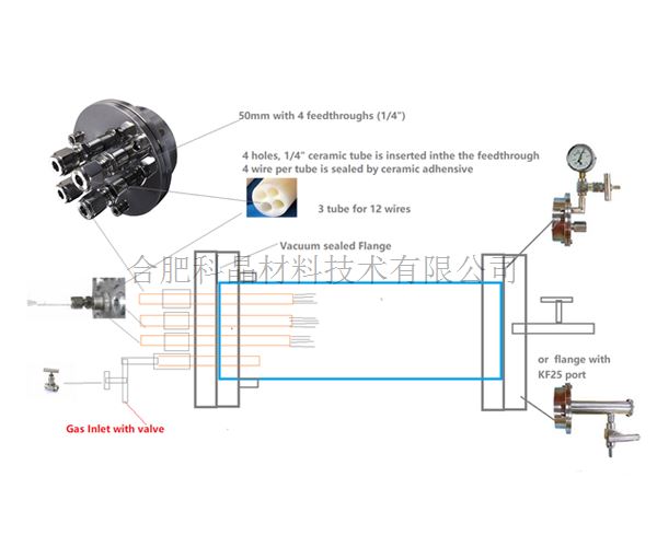 - EQ-FL50-4FTR是適用于外徑為50mm的爐管的單面法蘭,帶有四個(gè)6.35mm卡套接頭,為各種氣體輸送和熱電偶的插入提供多個(gè)通道