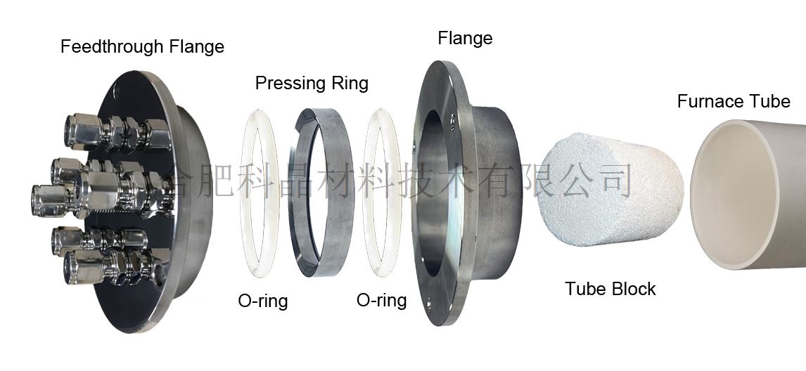 ·304不銹鋼法蘭,帶有雙層高溫硅膠密封圈; ·六角螺紋管密封,無需焊接和粘合; ·適用爐管的類型:陶瓷、玻璃、石英、鋼管等; ·多個(gè)通道,用于各種氣體輸送和熱電偶插入