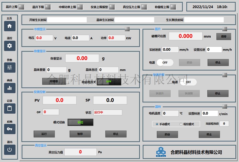 | 電氣控制系統(tǒng) | ·采用工控機(jī)控制,集成了壓力,溫度,電氣控制為一體 ·西門子PLC控制,真空系統(tǒng),溫控系統(tǒng),及壓力控制均集成在上位機(jī)軟件 ·可通過(guò)軟件設(shè)定相關(guān)參數(shù)及記錄實(shí)驗(yàn)數(shù)據(jù)曲線等 ·通過(guò)軟件可以設(shè)置加熱爐,升,恒,降溫,曲線等 ·通過(guò)軟件可以設(shè)置壓力等 |
