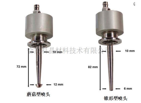 | 超聲霧化噴頭 | ·一個超聲電源(50KHz,100W),2個超聲霧化頭 ·2種超聲噴頭,帶有KF-25適配接口 一個是圓錐型-提供窄的霧化噴束~直徑2cm 一個蘑菇頭型-提供寬的霧化噴束~4cm 最高溫度:70 °C ·噴頭材質(zhì)為太合金(Ti-6Al-4V) ·噴速: 5 mL/min~ 40 mL/min (0.3L/hr - 2.4L / hr.) ·液體粘度范圍: 1 - 50 mPa·s (cPs) ·一個搖桿壁,用于固定霧化噴頭 搖擺速度:1°-20°/s ·可選:2-4個搖桿壁來安裝多個噴頭,可做多層膜 |