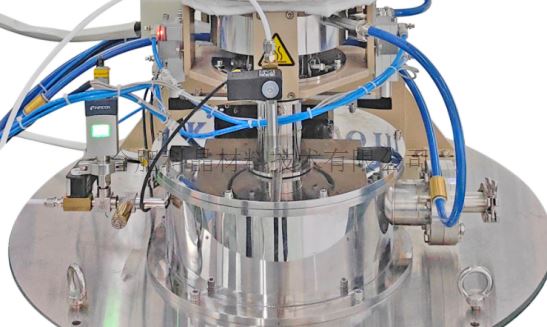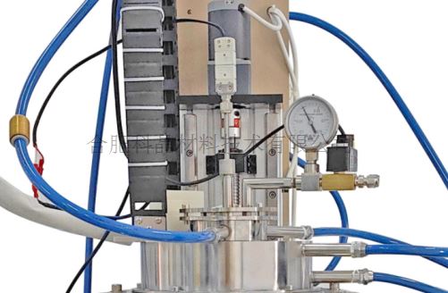 | 爐管與法蘭 | ·爐管材質(zhì):剛玉管 ·爐管尺寸:φ60*500mm ·一對不銹鋼水冷法蘭安裝在爐管兩端,同時上下法蘭外安裝了水冷環(huán),利用冷卻水降低法蘭溫度。 下法蘭上含有氣管接口,利用氣壓控制氣缸對下法蘭進(jìn)行自動壓緊和松開; ·上法蘭上的一個φ6.35mm的卡套接頭作為出氣口,一個電磁閥自動控制出氣的通斷; 安裝了一個量程為-0.1-0.15MPa的機(jī)械壓力表; 一個鎧裝接口用于插入測溫?zé)犭娕?,測量坩堝內(nèi)樣品溫度,熱電偶為雙鉑佬B型熱電偶; 上法蘭內(nèi)部焊接了吊環(huán),懸掛了一個多層陶瓷擋板,用于隔絕熱輻射; ·下法蘭與底部的不銹鋼腔體連接,腔體上含有一個CF法蘭,法蘭上的KF40接口為抽真空接口; 兩個φ6.35mm的卡套接頭為進(jìn)氣口,分別通過一個電磁閥控制進(jìn)氣的通斷; 一個KF16接口上安裝了一個數(shù)顯壓力表; 安裝了一個安全泄壓閥,當(dāng)腔室內(nèi)壓力達(dá)到上限壓力時,安全閥自動打開排氣; 一個KF40接口安裝了一個信號模塊,用于連接天平的外接信號線; 腔體內(nèi)部的稱重傳感器頂部預(yù)留有安裝孔,用于安裝坩堝支撐桿,支撐桿上安裝有坩堝支撐平臺,平臺上放入樣品坩堝。 |