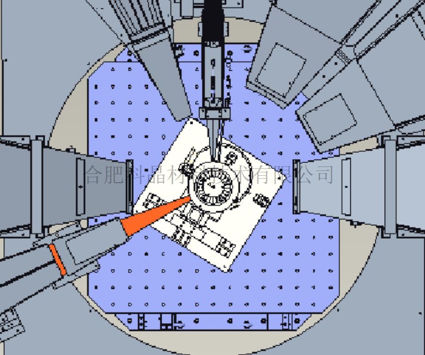 | 中子衍射孔和角度 | ·爐膛外圓上下對稱中心位置,有一個直徑φ30mm的通孔,用于中子衍射峰通過; ·加熱棒采取圓周分散布置,錯開了中子衍射峰的各個角度,如下圖片所示: |