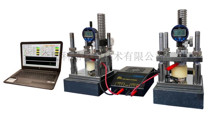·簡單放置正極材料,電解質(zhì)和負(fù)極材料(無需擰螺紋) ·整套裝置放置在加壓器件中(圖1-2) ·從2個壓棒上引出導(dǎo)線,接到電池測試儀上 ·可以安裝厚度測量裝置(圖3),用于測試電池充電&放電過程中的膨脹情況 ·可使用電動壓機(jī),實時顯示壓力變化(圖4)
