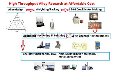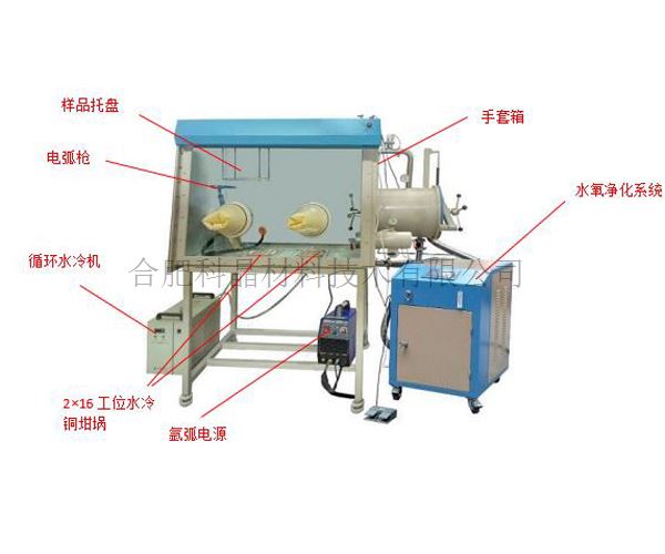 | 結(jié)構(gòu)&特點(diǎn) | ·手動(dòng)電弧熔煉系統(tǒng)的組成 ·配有水氧凈化系統(tǒng)的手套箱,手套箱內(nèi)部的水氧含量<1PPM ·2個(gè)16水冷銅坩堝(32工位) ·200A DC 氬弧電源 ·電弧槍,帶有一個(gè)KF40的饋通:用于將手套箱內(nèi)的電弧槍與手套箱外的氬弧電源連接 ·循環(huán)水冷機(jī),水流量為16L/min |