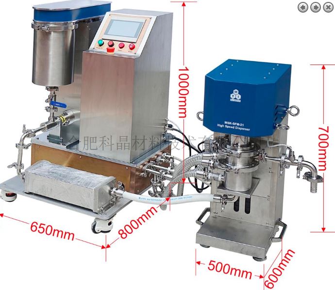 | 產(chǎn)品尺寸 | ·進料器:650 × 800 × 1000 mm (L × W × H). ·分散機:500 × 600 × 700 mm (L × W × H). |