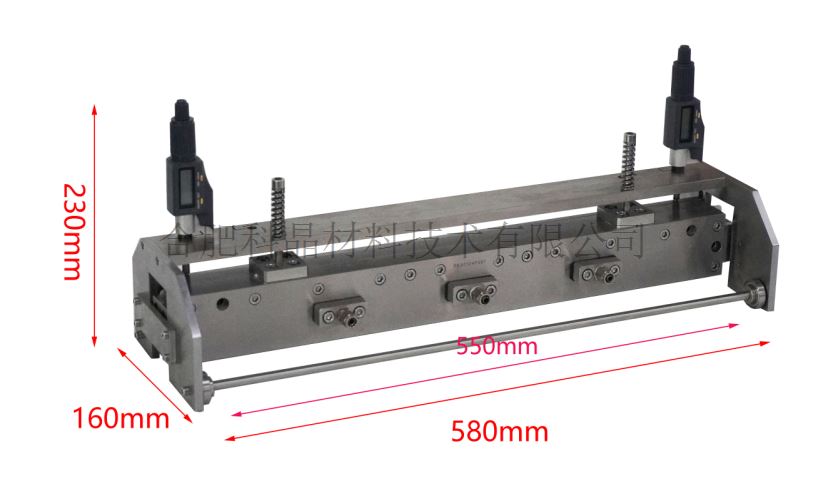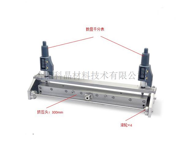 | 擠壓頭&移動支架 | ·一個300mm寬的擠壓頭,安裝在一個滾輪式移動支架上(圖1) ·推動幫推動滾輪式移動架,帶著擠壓頭移動,將漿料非常平滑地擠壓涂在基底上,擠壓頭和移動支架不接觸基底。(圖2) ·擠壓頭與基底之間的間隙是通過2個數顯千分表來調節(jié),調節(jié)精度±1um(圖3) ·可根據客戶要求定制多個擠壓頭固定在滾輪式移動架上(圖4-5) 圖1 圖2 圖3 圖4 圖5 |