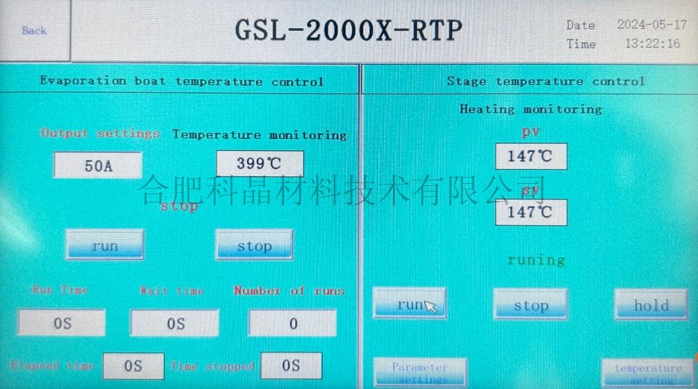 | 控制系統(tǒng) | ·設備殼體上安裝了一個7英寸的觸摸屏,蒸發(fā)舟的溫度控制和樣品臺的溫度控制均可在觸摸屏上設置與顯示 |