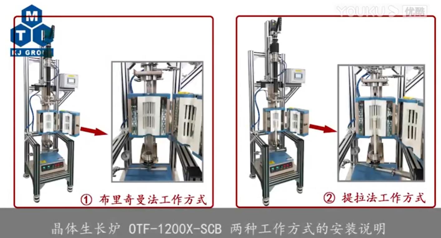 - OTF-1200X-SCB是一款小型晶體生長爐,適用于提拉法或布里奇曼法生長單晶,其最高溫度可達(dá)1100℃。設(shè)備主要由提拉機(jī)構(gòu)和爐體組成,提拉機(jī)構(gòu)具有提拉&旋轉(zhuǎn)功能,爐體采用立式雙溫區(qū)管式爐,爐管為直徑為Φ50mm的石英管,并且配有不銹鋼密封法蘭,此設(shè)備可采用提拉法(用籽晶從熔融態(tài)原來中提拉出單晶)或布里奇曼法(將樣品封入到小石英試管里,石英試管在加熱區(qū)內(nèi)向下移動)生長各種單晶。