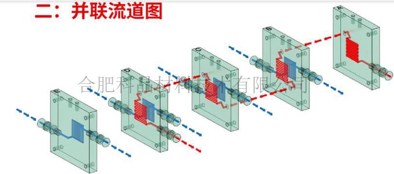 ·5塊帶有蛇形流道的Ti板堆疊在一起,用于氧化還原液流電池測試 ·2種流道連接方式:串聯(lián)和并聯(lián)
