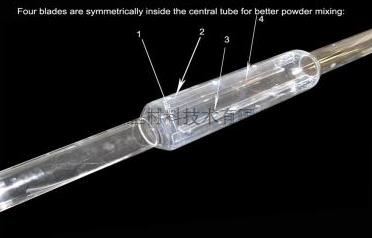 | 爐體結(jié)構(gòu)和爐管尺寸 | ·采用雙層殼體結(jié)構(gòu),并帶有風(fēng)冷系統(tǒng) ·高純氧化鋁纖維作為爐膛材料(表面涂有高溫氧化鋁涂層,可提高加熱效率延長爐膛使用壽命) ·異型石英管,內(nèi)部焊接有揚料板,使粉體燒結(jié)更加充分和均勻 ·尺寸:60 mm ID x100 mm OD x 1200 mm L (異型管) ·可放入物料的有效容積:300ml |