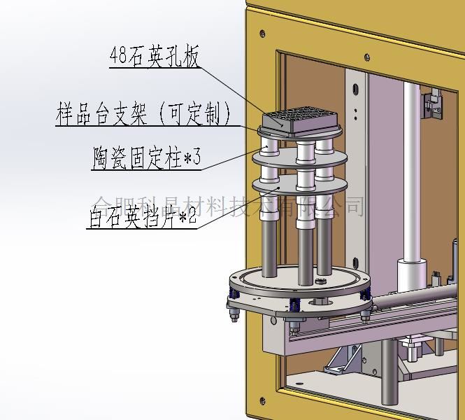 | 樣品臺和管堵 | ·管堵采用白石英擋片,兩片白石英擋片通過三個陶瓷柱固定 ·樣品臺直徑105mm,樣品臺上有方型凹槽(76*58mm),樣品放置在方型凹槽內(nèi)(樣品臺根據(jù)客戶可以定制) ·樣品臺 |
