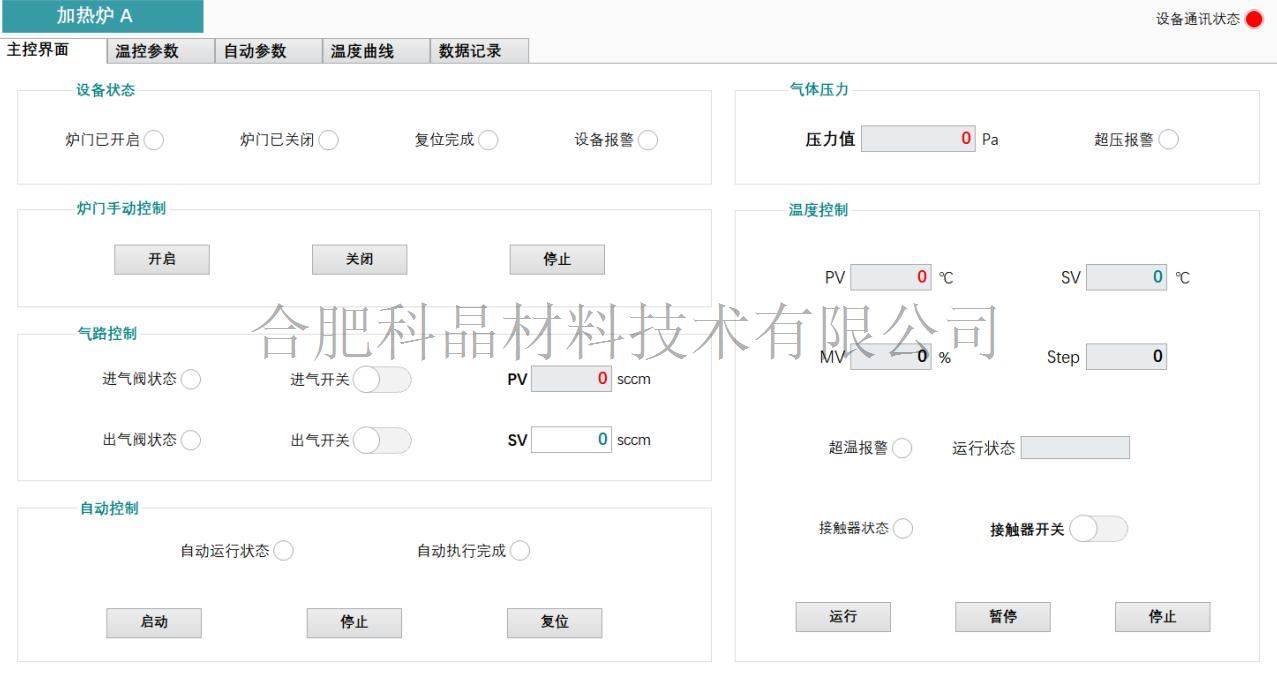 | 軟件功能 | 通過軟件可以進行以下操作: 設(shè)置加熱爐升溫曲線,設(shè)置通入加熱爐內(nèi)氣體流量大小,設(shè)置取放樣循環(huán)次數(shù) 參數(shù)設(shè)置完成后,加熱爐配合機器手可以完成以下流程 ·機器人裝樣后,能夠自動關(guān)閉艙門 ·抽真空,洗爐,并通入流動保護氣體(也可設(shè)定空氣燒結(jié),真空燒結(jié)) ·執(zhí)行程序多段升溫恒溫和降溫步驟(高達50段) ·程序完成后,停氣,能夠在300度打開艙門完成換樣 ·換樣完成后,可以繼續(xù)重復(fù)進行原有的溫度程序 (程序開源,配合機械手和對軟件進行嵌入式循環(huán)工藝控制) ·全流程自動記錄工藝和通訊上傳 軟件顯示以下參數(shù): ·爐管內(nèi)壓力數(shù)值(包括真空度) ·設(shè)備內(nèi)置一路0-5000sccm的質(zhì)量流量控制器 ·清洗周期(0-3次) ·前面板上安裝RJ45通信接口,可連接PC或無線路由器實現(xiàn)遠(yuǎn)程控制(PC和路由器可另行提供) ·電腦操作軟件,可支持多臺加熱爐 ·向現(xiàn)有客戶開放通信代碼,將設(shè)備與機器人連接,實現(xiàn)無人操作 |