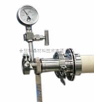 | 法蘭 | ·采用磁流體法蘭進行密封 ·進氣端法蘭上安裝了一個機械壓力表用于觀察爐管內的壓力,壓力表范圍-0.1-0.15MPa;一個φ6.35的卡套接頭作為進氣口使用,并通過一個不銹鋼針閥控制進氣的通斷;另外還預留了一個KF25接口作為備用 ·出氣端法蘭包含一個φ8mm帶寶塔氣嘴的出氣口,并通過一個通徑3mm的球閥控制出氣的通斷;一個KF25的接口用于抽真空 |