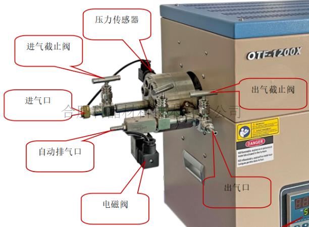 | 法蘭 | ·安裝了一個電磁閥和一個排氣口,當(dāng)爐管內(nèi)的氣壓高于所設(shè)定的壓力值時,容器內(nèi)的壓力通過安裝在法蘭上的電磁閥自動釋放 ·安裝了一個高溫型的壓力變送器(測量范圍為25MPa或250bar),使得爐管內(nèi)壓力值顯示在爐體前面板的壓力顯示儀表上,便于讀數(shù) ·一個不銹鋼接頭作為進(jìn)氣口使用,并通過一個不銹鋼針閥控制進(jìn)氣的通斷 ·一個φ8mm的寶塔嘴接口作為出氣口使用,并通過一個不銹鋼針閥控制出氣的通斷 |