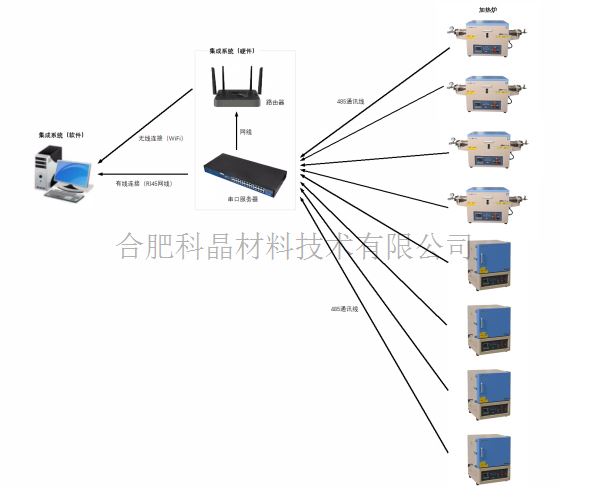 | 硬件配置 | ·常規(guī)加熱爐采用485串口通訊的方式,可通過(guò)上位機(jī)來(lái)獲取相關(guān)參數(shù),可以配套相關(guān)的串口服務(wù)器設(shè)備, 根據(jù)用戶需求配套8口,16口或32口串口服務(wù)器,用戶只需1根標(biāo)準(zhǔn)網(wǎng)線連接串口服務(wù)器即可實(shí)現(xiàn)集中控制 且不同設(shè)備間互不影響,串口服務(wù)器如下圖: ·硬件連接示意圖如下: |