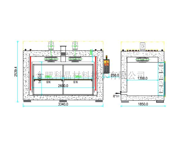 ·烘箱頂部安裝有2臺(tái)熱循環(huán)電機(jī)(每臺(tái)功率2.2KW),風(fēng)扇葉片材質(zhì)為304不銹鋼 ·烘箱后側(cè)有一個(gè)進(jìn)氣口 ·烘箱頂部有一個(gè)排風(fēng)口
